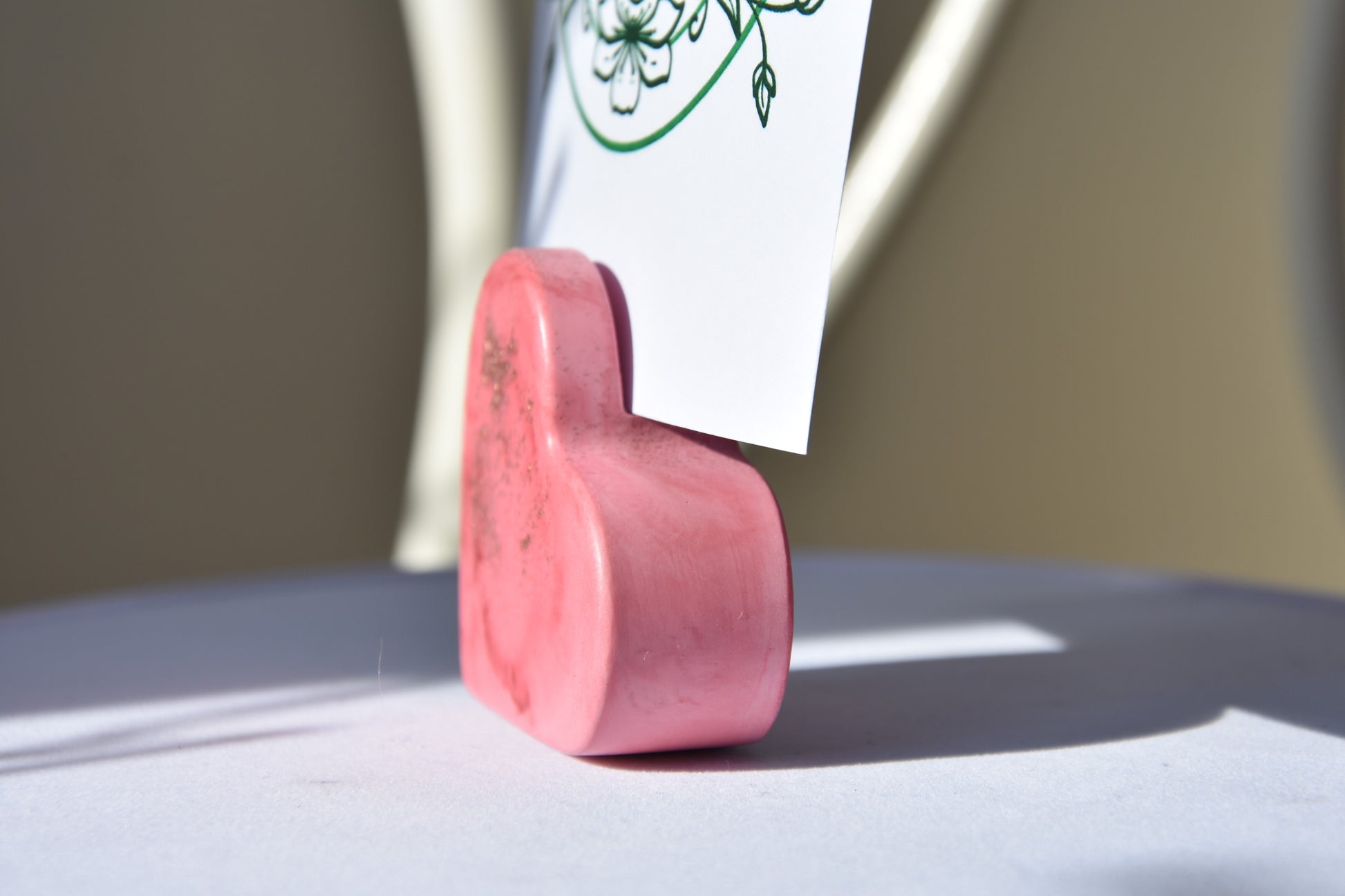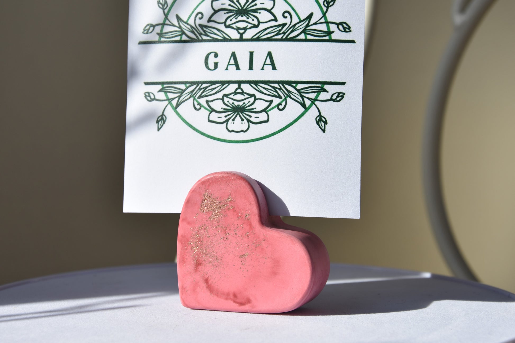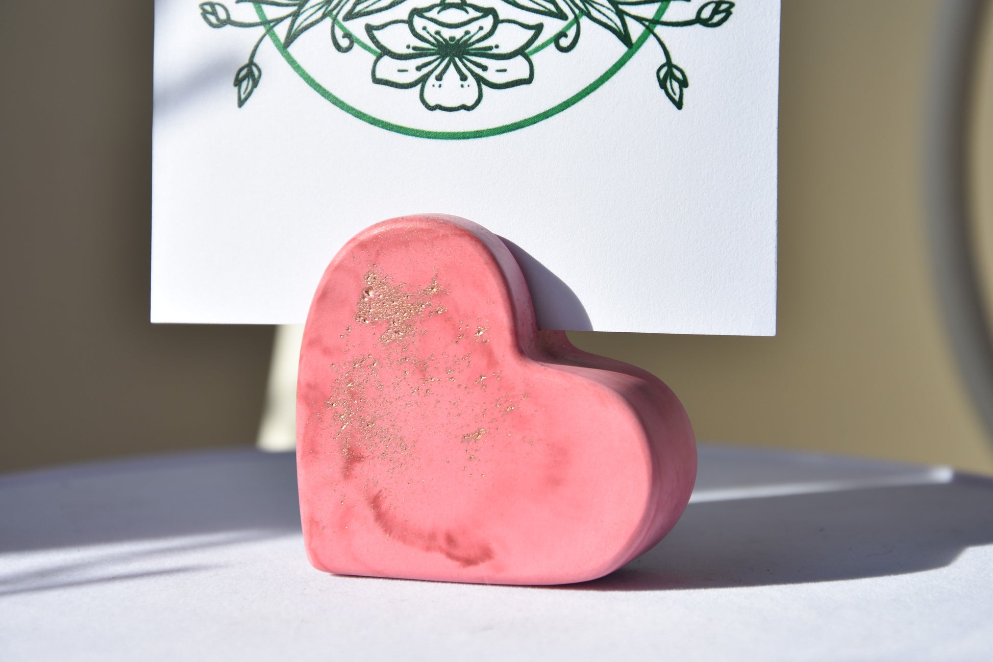 Aggiungi un tocco di calore e creatività al tuo spazio con questo portafoto e portacarte a forma di cuore, realizzato a mano 🤍
